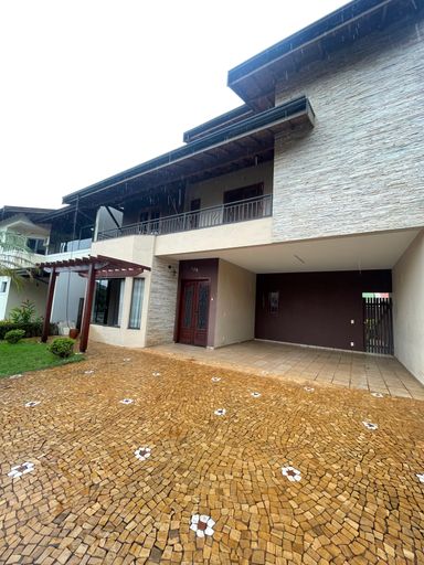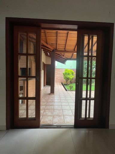 Com 262 m² de construção, o imóvel apresenta uma arquitetura que valoriza detalhes em madeira, conferindo elegância, aconchego e personalidade aos ambientes.