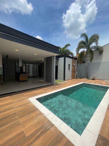 Excelente casa térrea com pé-direito duplo, acabamento impecável e projeto moderno.