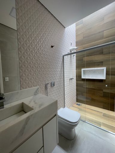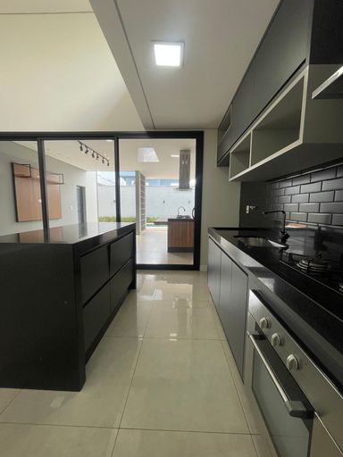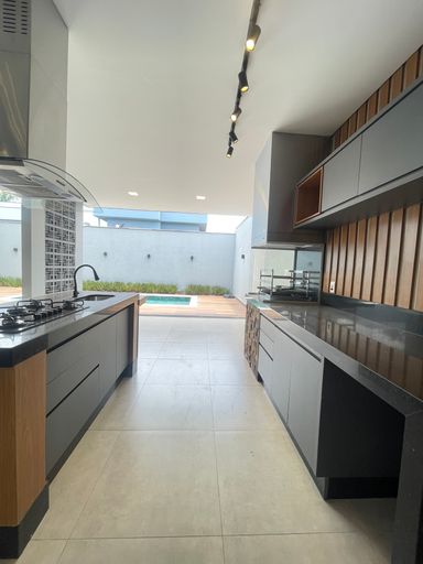 O imóvel conta com 3 suítes, sendo 1 suíte master com closet e cuba dupla, oferecendo conforto e sofisticação. A sala possui pé-direito duplo, integrada a uma cozinha ampla e planejada. Dispõe também de lavanderia, despensa, área de serviço e é totalmente completa em marcenaria.
