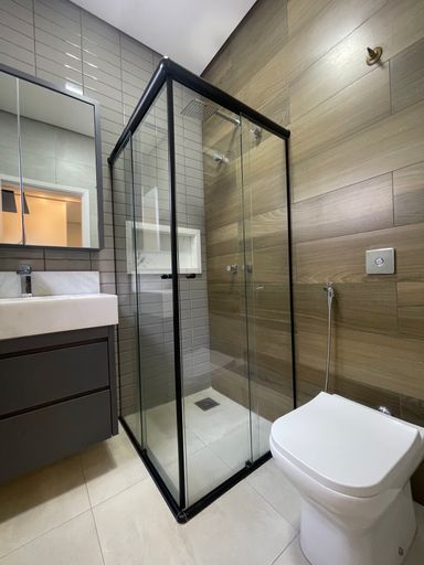 Conta ainda com aquecimento solar, piso porcelanato, esquadrias de alumínio, persianas automatizadas e fechadura digital.
