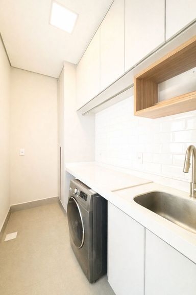 Lavanderia ampla com espaço para duas lava-roupas