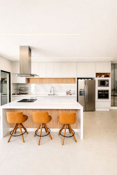 A cozinha é um verdadeiro destaque: moderna e totalmente equipada com cooktop de indução, forno, micro-ondas e coifa, perfeita para quem valoriza funcionalidade e design.