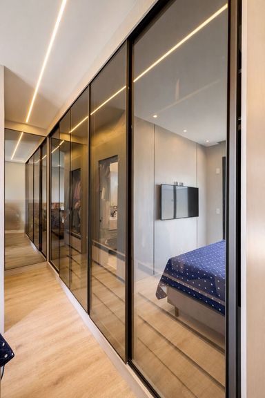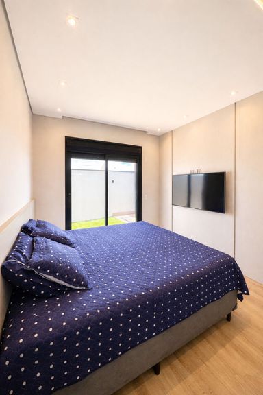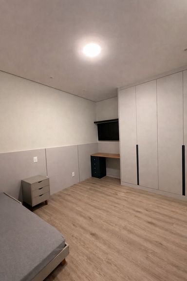 São 3 suítes, todas com armários planejados e marcenaria sob medida, sendo 2 suítes com ar-condicionado, garantindo conforto térmico e praticidade.