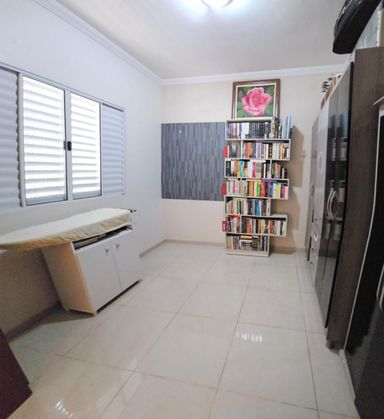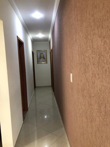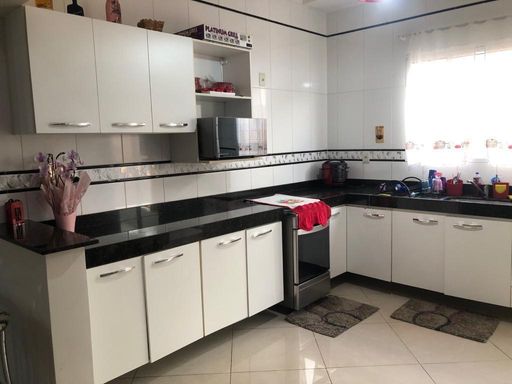 Cozinha americana planejada, garagem para 4 carros sendo 2 cobertas, área gourmet com churrasqueira, banheiro e quarto, além de amplo quintal com potencial para piscina.